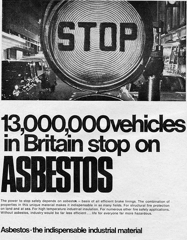 Asbestos brake pads ad (1960) by lobbying group attempting to dispel asbestos health concerns